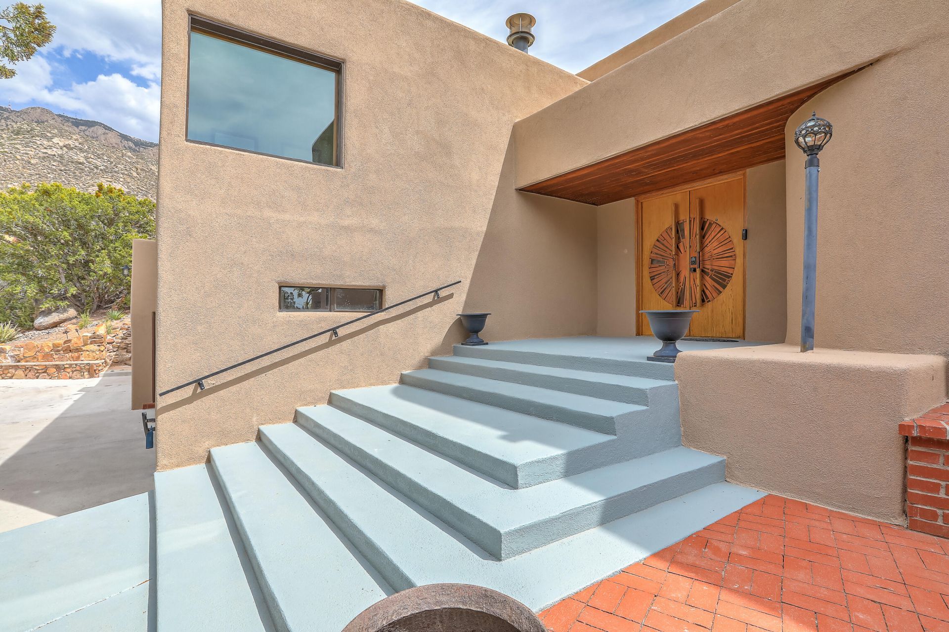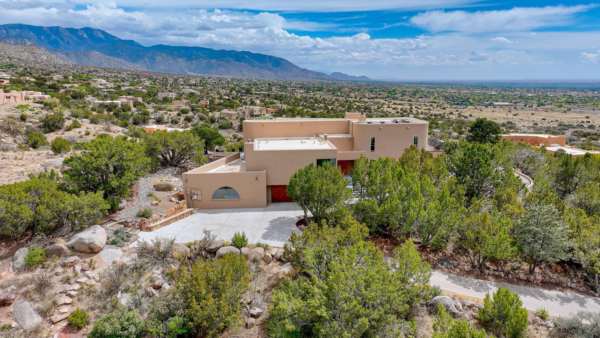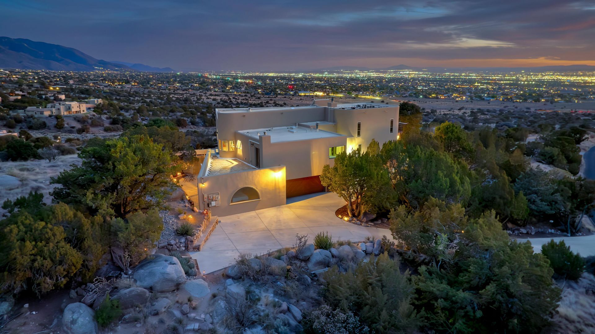 Poised on a premier lot in Sandia Heights perched overlooking all of Albuquerque, this home is a refined sanctuary where panoramic vistas take center stage. The estate features four bedrooms and four bathrooms, revitalized with over $280,000 in recent high-end refinements. The chef's kitchen is a masterpiece of style, boasting granite countertops, an induction range, and bespoke cedar shelving. Retreat to a private indoor pool gallery or an exterior patio featuring a dual-waterfall pond and fire pit. With energy-efficient windows and solar integration, this home defines the intersection of sustainable innovation and architectural elegance.