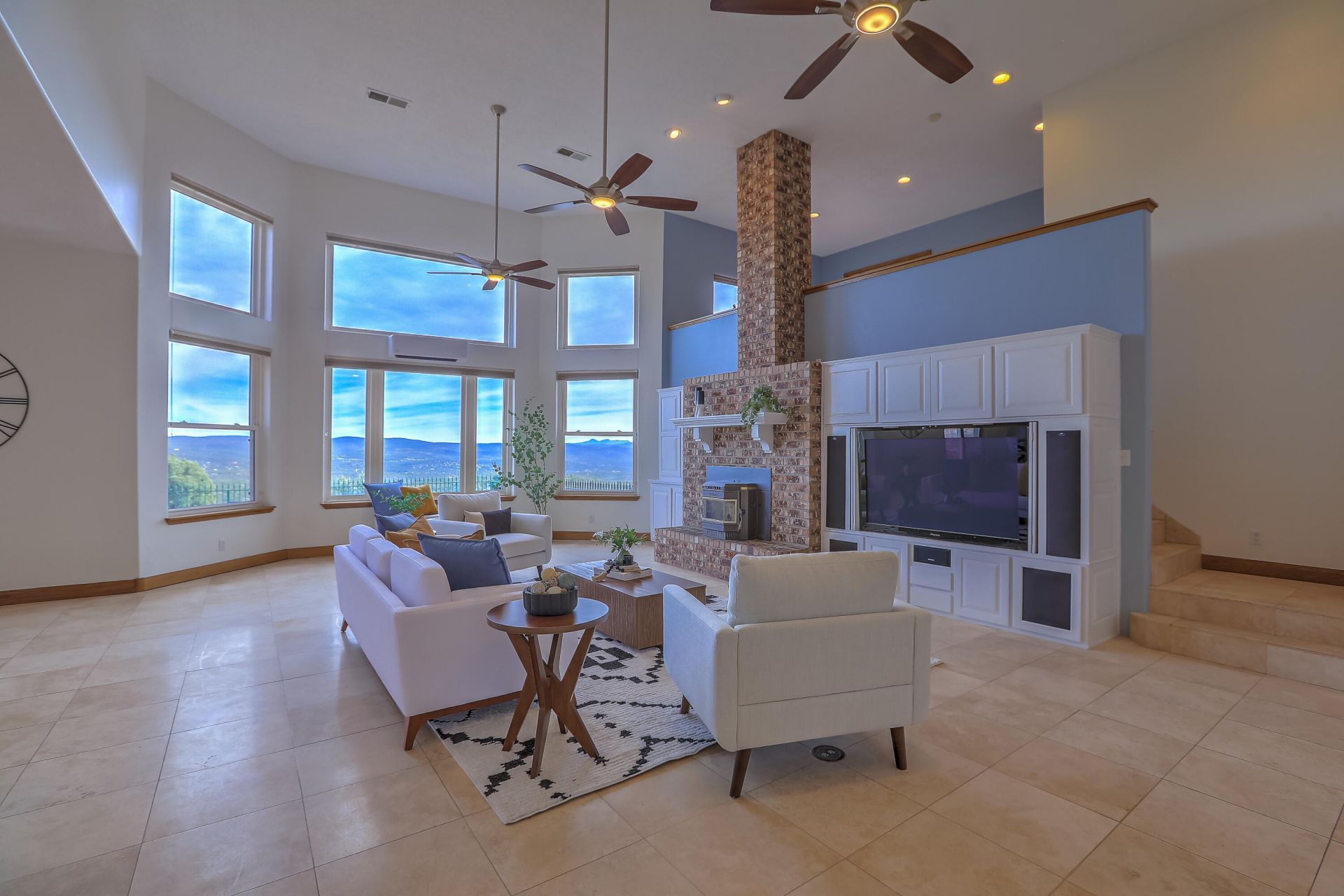 Perched in the Sandia Mountains in Cedar Crest, this solar-powered 3,633 square ft brick home sits on 4.46 private acres. With breathtaking panoramic views, star-filled night skies, and direct trail access and no HOA. Huge living area with breathtaking views. Primary suite captures the views and has a walk in closet of your dreams. Recently installed mini-split HVAC and a pellet stove make for comfortable mountain living. Owned solar system, backup generator, and Starlink-ready keep you connected and powered on your terms. Five garage spaces plus a workshop area and possible bathroom-- ideal for collectors, hobbyists, and outdoor enthusiasts. Minutes from Albuquerque, a world away in feel. This is mountain living at its finest.